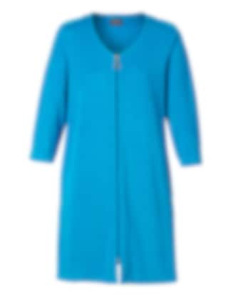 3/4 ærmer og frontlukning med dekorativ lynlås.