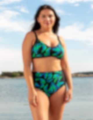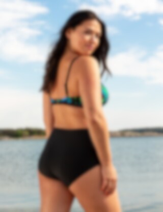 Flatterende snit med rynker i siderne og med kropskontrol foran, der former og holder fast.
