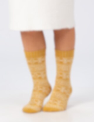 - Strømpe Uldfrotté Mønstret Gul 1-pack